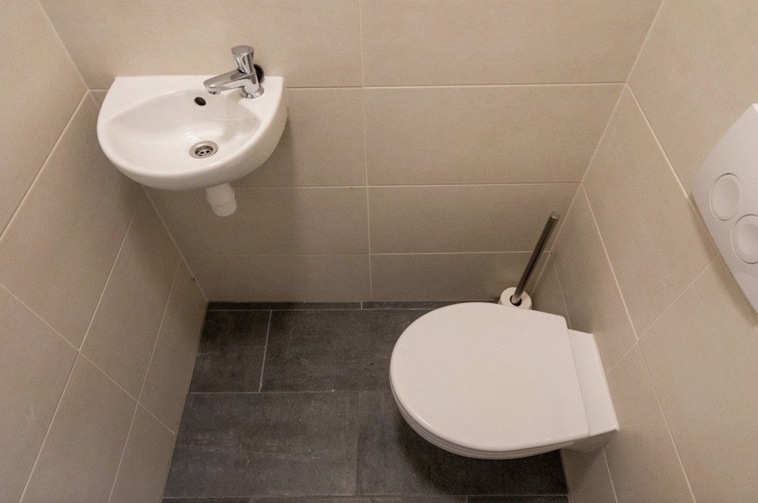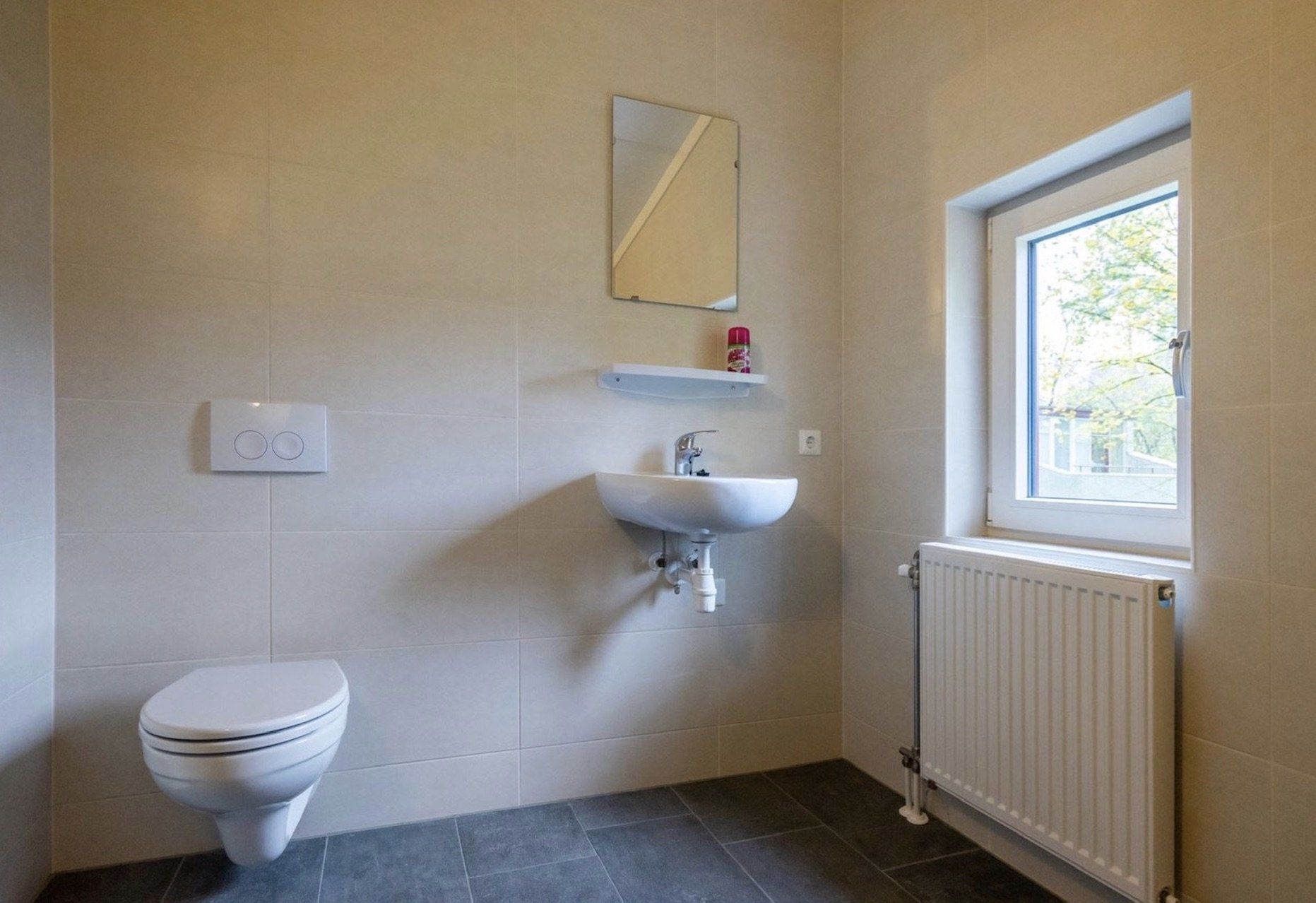 Ruime badkamer op de verdieping met douche, wastafel en toilet
